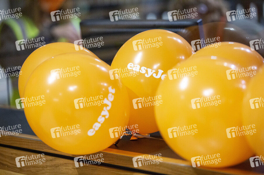 Allererster kommerzieller Abflug vom BER mit easyJet nach London Gatwick am Gate im Non-Schengen-Bereich des Terminal 1 im Flughafen Berlin Brandenburg. Schönefeld, 01.11.2020