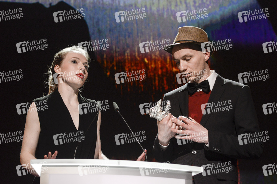 Anna Brueggemann und Dietrich Brueggemann mit dem Silbernen Bären für das beste Drehbuch für 'Kreuzweg / Stations of the Cross' bei der Closing Ceremony und Preisverleihung auf der Berlinale 2014 / 64. Internationale Filmfestspiele Berlin, 15.02.2014