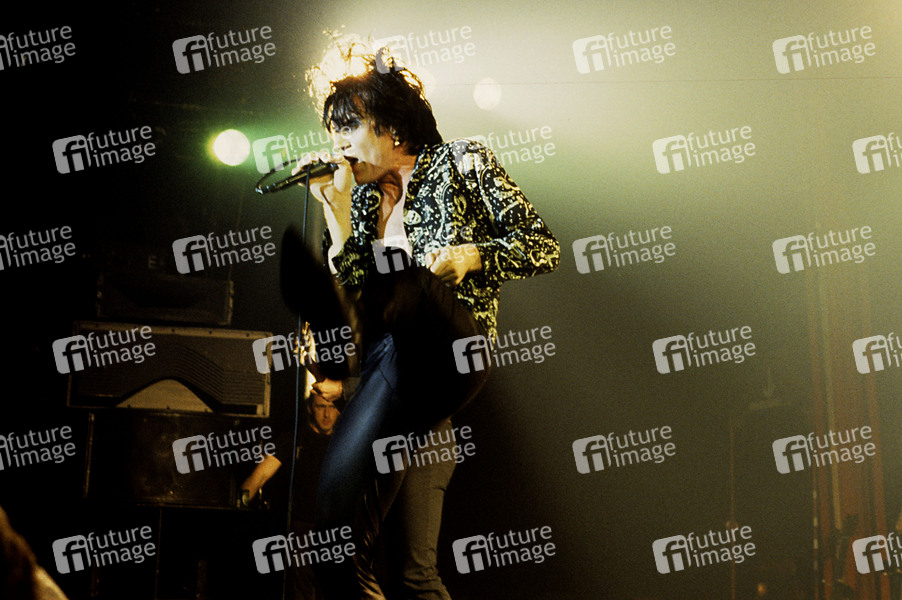 Lux Interior von The Cramps live in der Brixton Academy. London, 10.04.1984