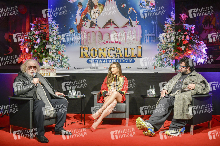 Bernhard Paul, Lili Paul-Roncalli und Oliver Polak bei der Pressekonferenz zum 20. Roncalli Weihnachtscircus 2024 im Tempodrom. Berlin, 21.11.2024