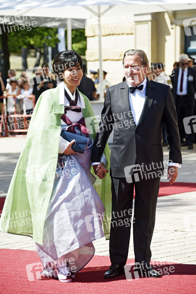 Politiker, 1999-2004 Vorsitzender der SPD, 1990-1998 Ministerpräsident von Niedersachsen, 1998-2005 der siebte Bundeskanzler der Bundesrepublik Deutschland, Prominenz, Celebrity, Celebrities, Premiere, Roter Teppich, Ankunft, Entertainment, Unterhaltung, Kultur, Konzert, Musikfestival, Klassik, Oper, Bayreuther Festspiele