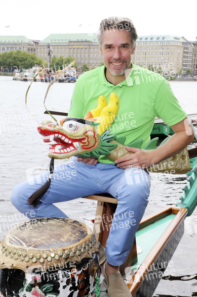 Michael Stich beim Drachenbootrennen 2024 der Michael Stich Stiftung auf der Alster. Hamburg, 14.06.2024