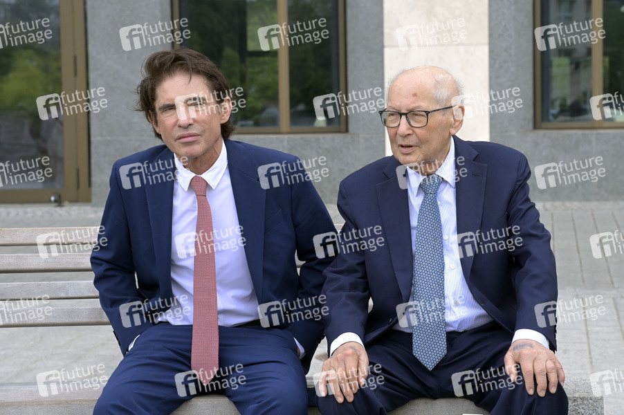 Arno Klarsfeld und Serge Klarsfeld bei der Kranzniederlegung am Denkmal für die ermordeten Juden Europas. Berlin, 27.05.2024
