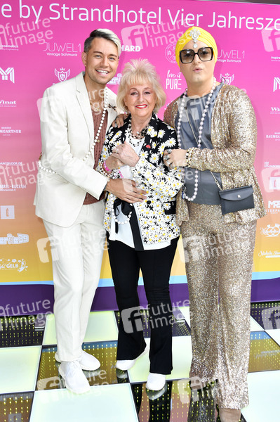 Marcell Damaschke, Stefanie Simon und Julian F.M. Stoeckel beim Landpartie Sommerfest mit Julian F.M. Stoeckel im Strandhotel Vier Jahreszeiten. Buckow, 23.08.2024