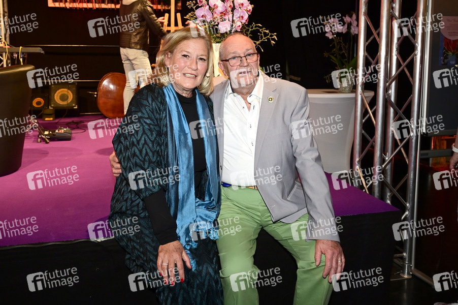 Suzanne von Borsody, als Namensgeberin und Bernd Treder bei der feierliche Taufe einer neuen Orchideenzüchtung bei der Nacht der Orchideen während der Ostermesse Dresdner Ostern in der Messe Dresden. Dresden, 28.03.2025