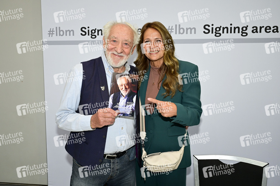Dieter Hallervorden mit seiner Ehefrau Christiane Zander bei der Signierstunde seines Buches 'Meine erstaunlichen Alltagsabenteuer' in Halle 4 auf der Leipziger Buchmesse 2025 auf dem Messegelände. Leipzig, 27.03.2025