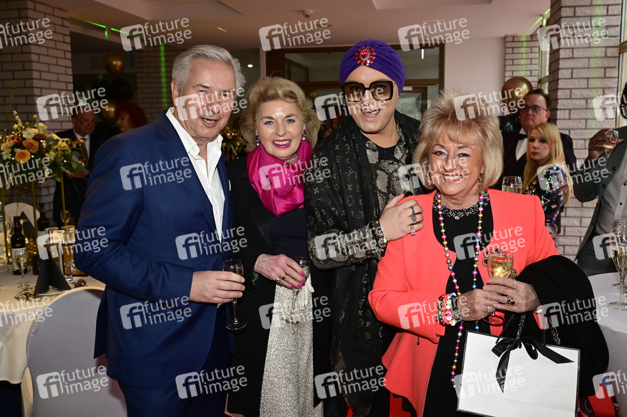 Klaus Wowereit, Tini Gräfin von Rothkirch, Julian F.M. Stoeckel und Stefanie Simon bei der Geburtstagsgala zum 80. Geburtstag von Dagmar Frederic im Restaurant am Müggelturm. Berlin, 15.04.2025