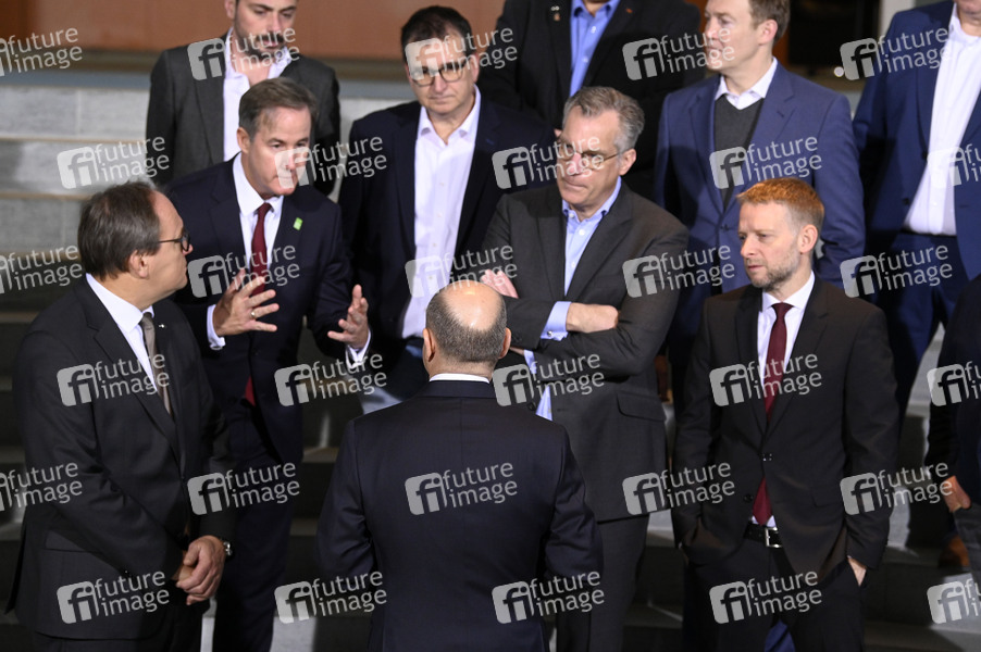 Olaf Scholz beim Treffen des Bundeskanzlers mit Vertretern der Stahlbranche sowie von Gewerkschaften und Betriebsräten im Bundeskanzleramt. Berlin, 09.12.2024