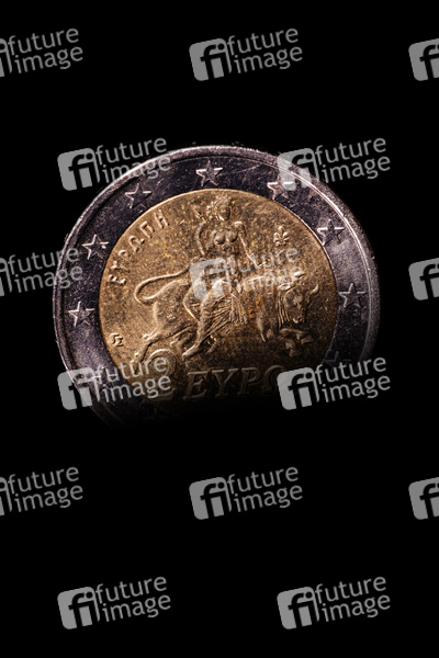 Eine 2-Euro-Münze im Lichteinfall.