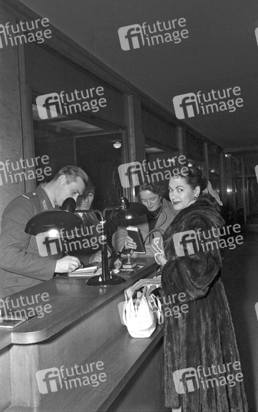 Yvonne De Carlo's Ankunft im Berliner Hotel