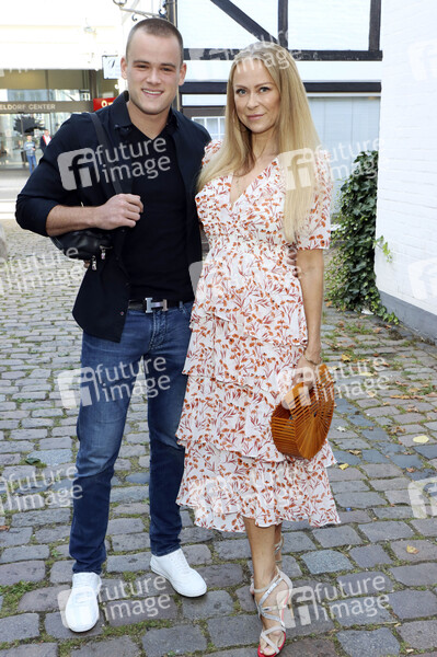 Jenny Elvers mit Sohn Paul Jolig bei der 'Golden Things meets Pink Carpet' Pre-Closing Finissage im Studio 28 Milchstrasse. Hamburg, 21.07.2020
