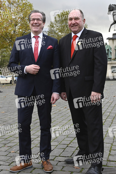 Christoph Kuckelkorn und Ralf Schlegelmilch beim Fototermin zur Sessionseröffnung 2019 des Kölner Karnevals auf dem Heumarkt. Köln, 05.11.2019