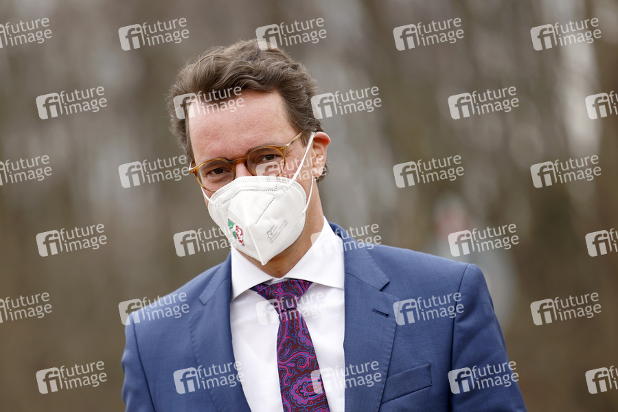 NRW-Ministerpräsident Hendrik Wüst bei der Eröffnung der Baustelle für Deutschlands größte Anlage zur Herstellung von Bio-Flüssiggas auf dem Gelände des 'Shell Energy an Chemicals Park Rheinland'. Köln, 09.02.2022