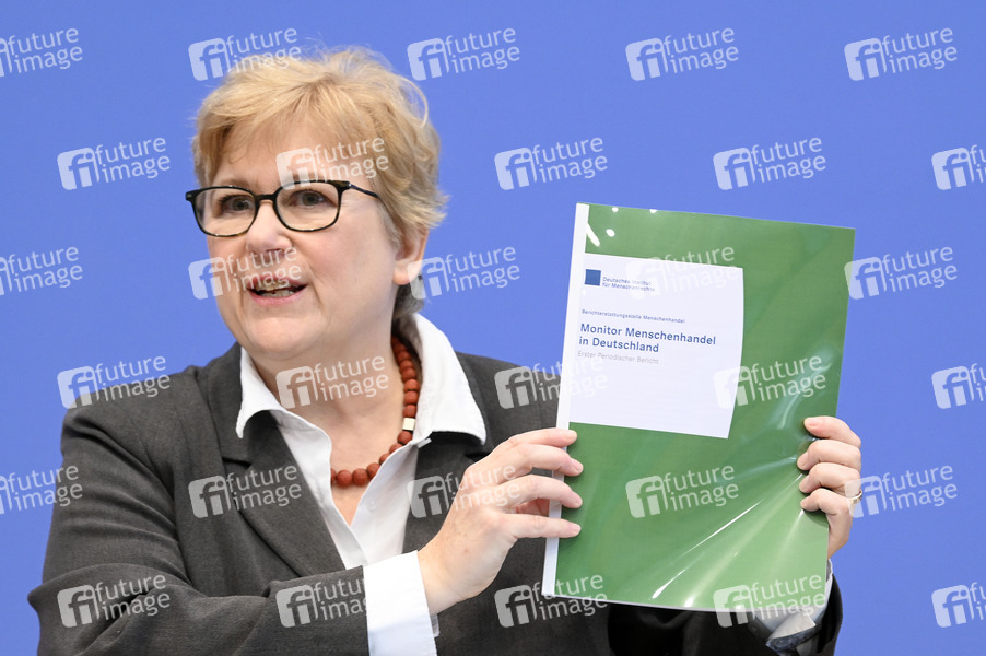 Beate Rudolf bei der Bundespressekonferenz zur Vorstellung des 'Monitor Menschenhandel in Deutschland - Erster Periodischer Bericht' im Haus der Bundespressekonferenz. Berlin, 17.10.2024