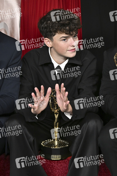 Owen Cooper mit dem Emmy für den besten Nebendarsteller in der Mini-Serie 'Adolescence' beim Preisträger-Photocall der 77. Primetime Emmy Awards 2025 im Peacock Theater. Los Angeles, 14.09.2025