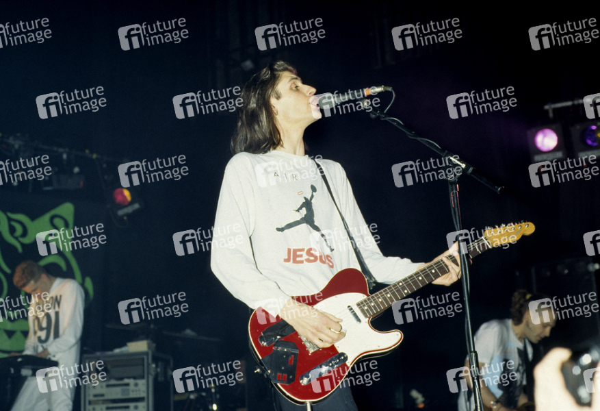 Iain Baker, Mike Edwards und Jerry De Borg von Jesus Jones live im Town & Country Club. London, 27.02.1991