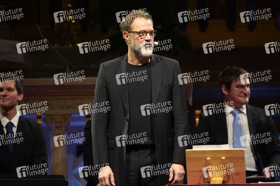 Sebastian Koch mit dem Chor Vocalis Ensemble Dresden und dem Jazztrio Dresden bei der Weihnachtslesung 'Und lauscht hinaus den weißen Wegen' im Rahmen der Lesereihe 'Meisterhaftes aus dem Berliner Dom' im Berliner Dom. Berlin, 26.11.2022