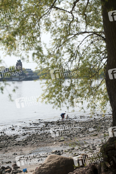 Niedrigstand, Tiefststand, Pegel, Ufer, Trockenheit, Regenmangel, Niederschlagsmangel, Gefahren für die Schifffahrt, Wasserweg, Wasserwege, Fahrrinne, Pegelstand, Pegelmarke, Schiffsverkehr, Kleinwasserzuschläge, fehlende Niederschläge, Flussbett, Flussufer, Elbufer, Wasserstand, Wasserstände, Binnenschifffahrt, Wasserstraße, Tiefgang, Fluss, Wassertiefe, Wasserrückgang