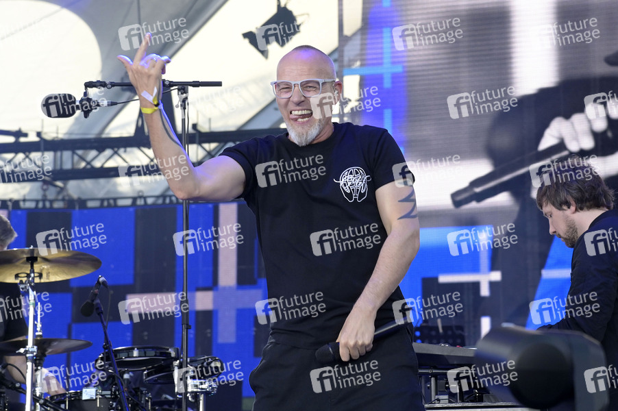 Thomas D von Die Fantastischen Vier live bei der Abschlussveranstaltung auf dem Demokratiefest zu 75 Jahren Grundgesetz auf der Bühne zwischen Kanzleramt und dem Deutschen Bundestag. Berlin, 26.05.2024