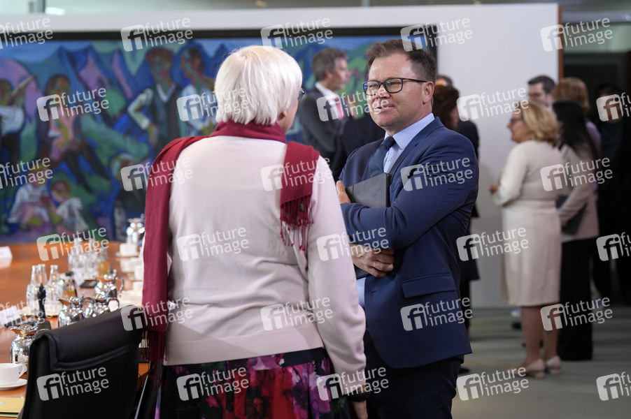 Kabinett, Bundesregierung, Sitzung, Bundeskanzleramt, Regierungsmitglieder, Auftaktbilder, Auftakt, Kanzleramt, Politik, Regierung, Demokratie, Kabinettssitzung, Politikerin, Bündnis 90/Die Grünen, Staatsministerin für Kultur und Medien, Politiker, SPD