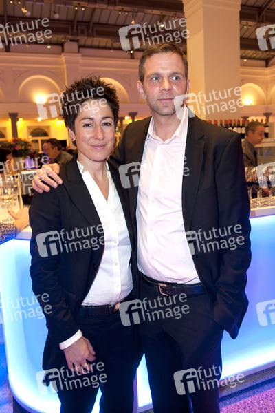 Dunja Hayali mit Gast bei der Verleihung vom 15. Medienpreis der Kindernothilfe 2013 in der Hauptstadtrepräsentanz der Deutschen Telekom AG. Berlin, 15.11.2013