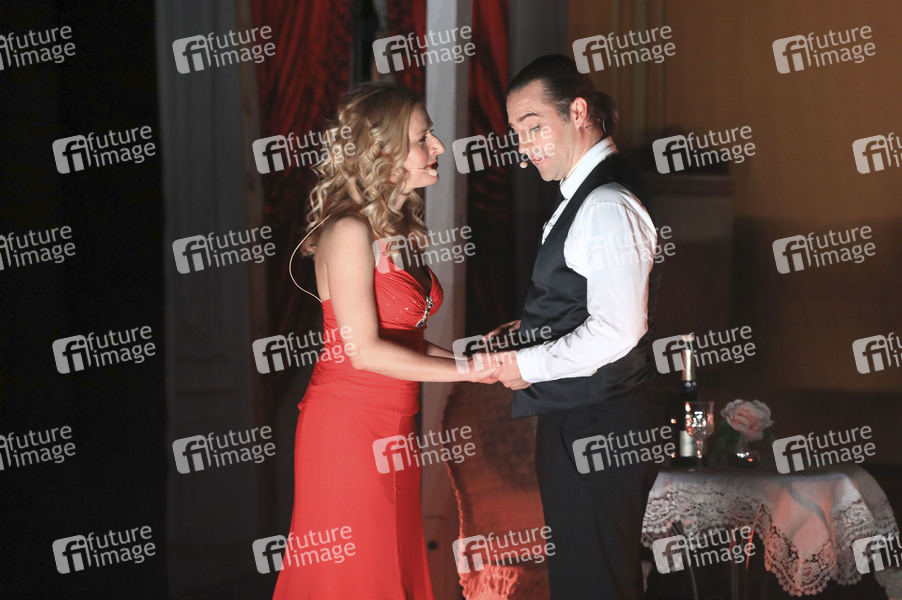 Stefanie Hertel und Stuart Sumner bei der Musicalpremiere 'Ganz Paris träumt von der Liebe' im Kulturhaus. Gotha, 12.04.2024