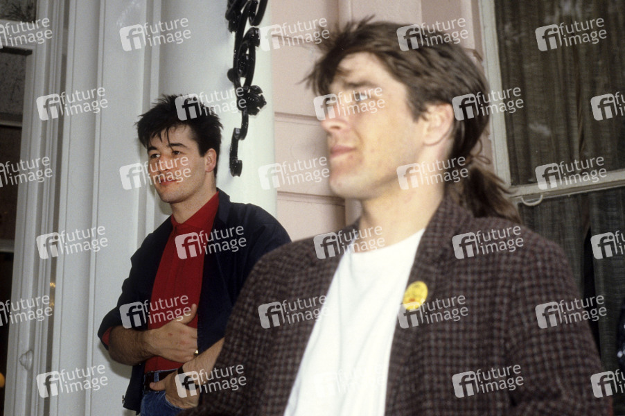 Gary Daly und Eddie Lundon von China Crisis bei einem Fototermin vor einem Hotel. London, 13.06.1985