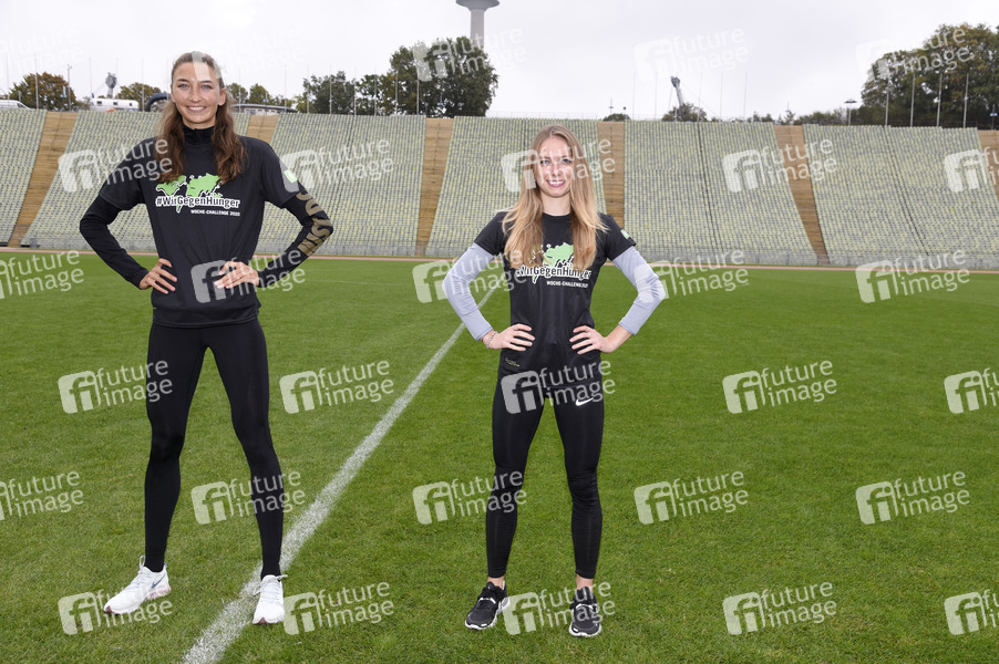 Christina Hering und Katharina Trost beim Fototermin zur sportichen '#WocheChallenge' im Olympiastation München. Unter dem Motto 'Wir können was bewegen!' ruft die Welthungerhilfe zu dieser Challenge auf und bittet um Spenden für eine Welt ohne Hunger. München, 13.10.2020