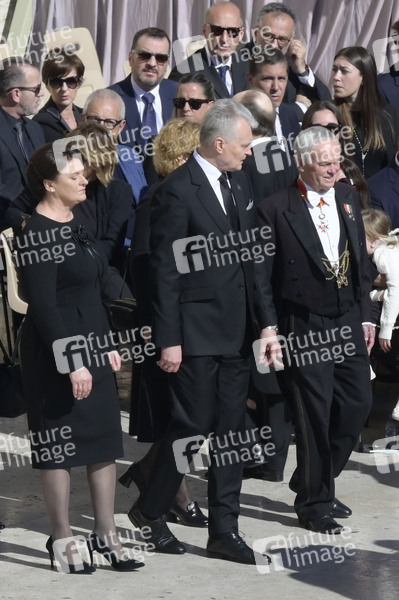 Gitanas Nauseda mit Ehefrau Diana Nausediene bei der Trauermesse für den verstorbenen Papst Franziskus auf dem Petersplatz. Vatikanstadt, 26.04.2025