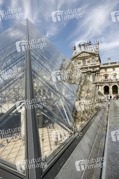 frühere französische Königsresidenz, das drittgrößte Museum der Welt, Baubeginn 1190, der Louvre entwickelte sich aus eine ganzen Reihe von Bau- und Umbaumaßnahmen, Glaspyramide im Innenhof 1989 erbaut vom Architekten Ieoh Ming Pei, sie besteht aus 603 rhombenförmigen und 70 dreieckigen Glassegmenten, die Pyramide weist eine Höhe von ca.22 Metern auf und hat eine Basislänge von 35 Metern bei einen Neigungswinkel von knapp 52 Grad, als Vorbild für die Proportionen diente die große Pyramide von Gizeh, Gesamtgewicht ca. 180 Tonnen