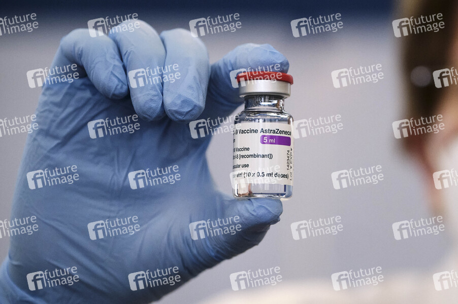 Impfstoff AstraZeneca beim Start der Impfungen für Einsatzkräfte aus den geschlossenen Einsatzeinheiten der Zentralen Polizeidirektion Niedersachsen (ZPD) in der Tannenbergallee. Hannover, 04.03.2021