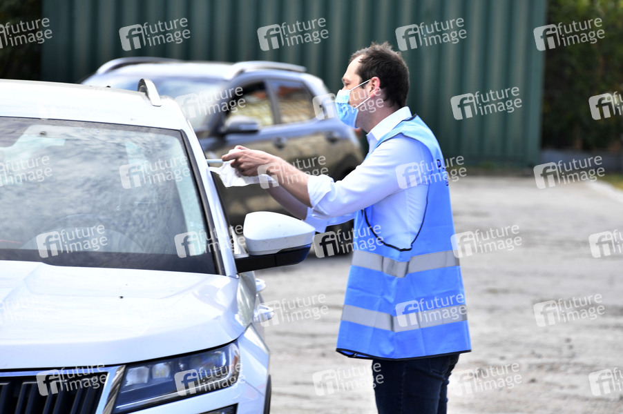Eröffnung einer Drive-In Corona-Teststation auf dem Parkplatz vor dem Estrel-Hotel. Berlin, 24.04.2020