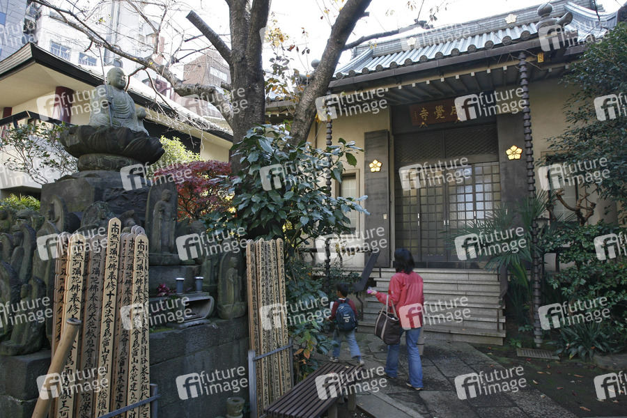 Buddhistischer Friedhof, Grabsteine, japanische Schriftzeichen, Statue, Buddha