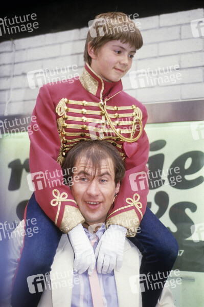 Fish mit LP-Cover-Model Robert Mead beim Photocall zum Release des Marillion Albums 'Misplaced Childhood' im Ronnie Scotts. London, 15.06.1985