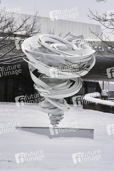 Verschneite Twister-Skulptur vor dem Sprengel Museum am Maschsee. Hannnover, 08.02.2021