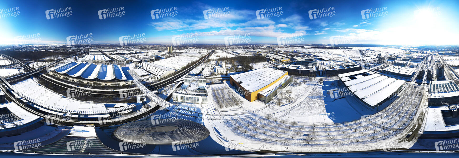 Luftbild vom EXPO 2000 Areal und dem Messegelände im Winter. Hannover, 11.02.2021