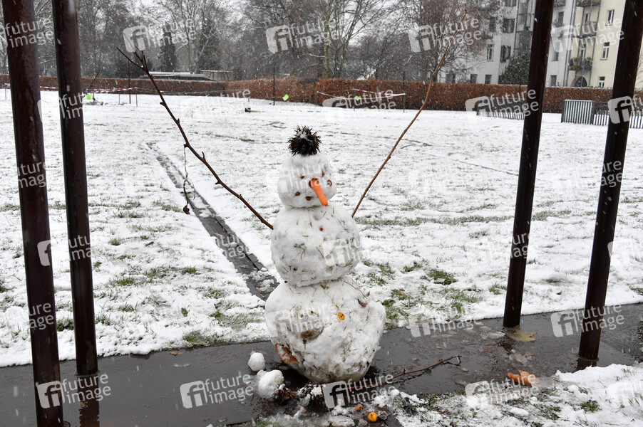 Erster Schnee und erste Schneemänner 2021 an der Bernauer Straße. Berlin, 03.01.2021