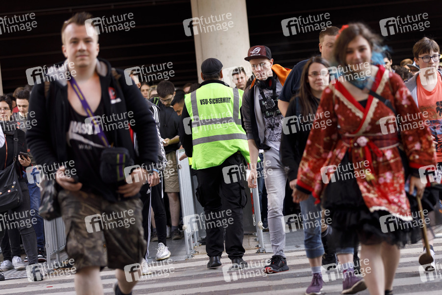Besucher, Abendticket, Besucherrekord, Einlass, Security, Schranke, Player, Bildschirmlicht, Spielesucht, Digitalisierung, Reizüberflutung, Spiele-Messe, Gaming, Gaming-Industrie, Spieleindustrie, Spielemesse, Gamingindustrie, Zocken, Daddeln, Games, Game, Spiele, PC-Spiele, Computerspiele, Konsolen, Konsolenspiele, Videospiele, Fair, Event, Gamer, Unterhaltungselektronik, Software, Hardware, europäische Leitmesse für digitale Spielekultur, internationale Gaming-Community, Gamescom Congress 2019, Virtual Reality, Browsergames, Spieletrends, Symbolfoto, Symbolbild
