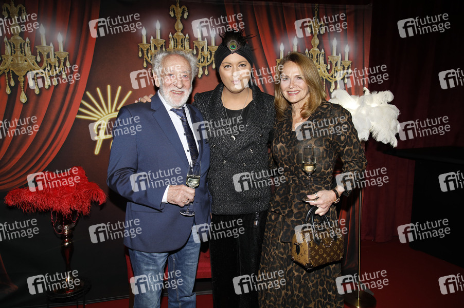 Dieter Hallervorden, Julian F.M. Stoeckel und Christiane Zander bei der Premiere der Fächer Palast Dinnershow 2025 auf dem Messplatz. Karlsruhe, 27.11.2025