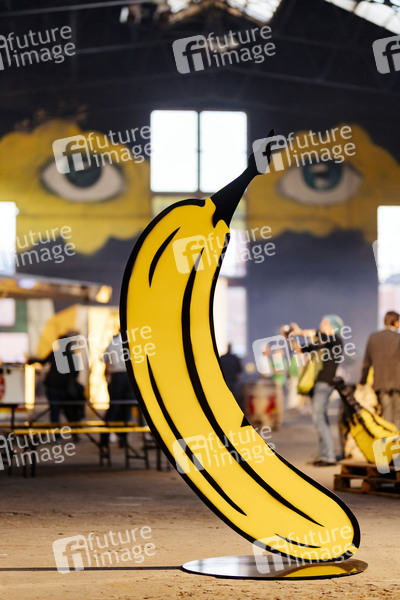 Impression aus der Ausstellung des Bananensprayers Thomas Baumgärtel in der Halle 64 in Dellbrück. Köln, 15.09.2019