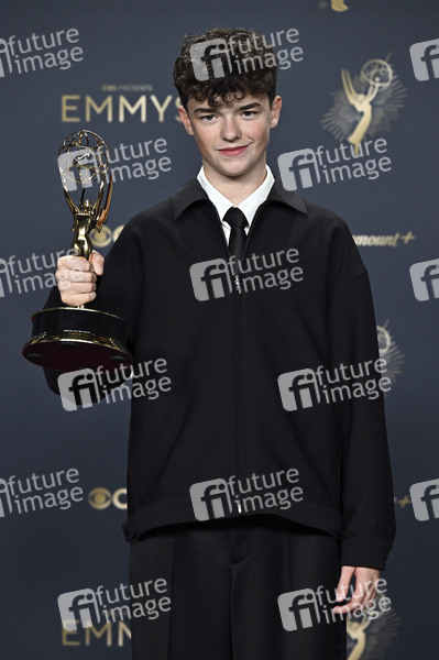 Owen Cooper mit dem Emmy für den besten Nebendarsteller in der Mini-Serie 'Adolescence' beim Preisträger-Photocall der 77. Primetime Emmy Awards 2025 im Peacock Theater. Los Angeles, 14.09.2025