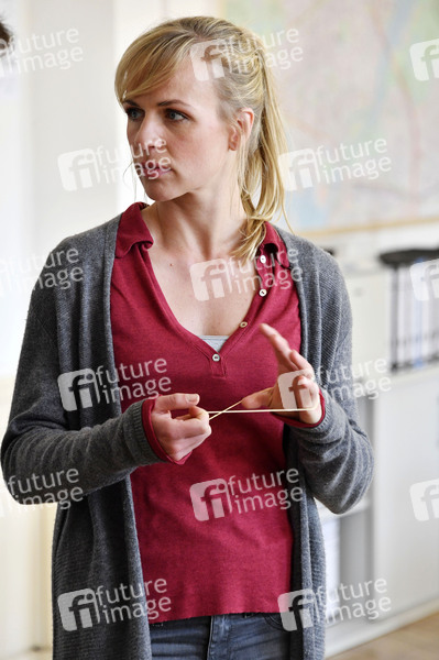Katrin Jaehne beim Fototermin am Set der 2. Staffel der ZDF Serie 'Soko Potsdam' im Polizeipräsidium. Potsdam, 09.04.2019