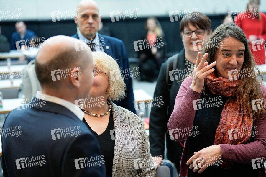Olaf Scholz und Heike Heubach bei der Fraktionssitzung der SPD-Bundestagsfraktion im Reichstagsgebäude. Berlin, 19.03.2024