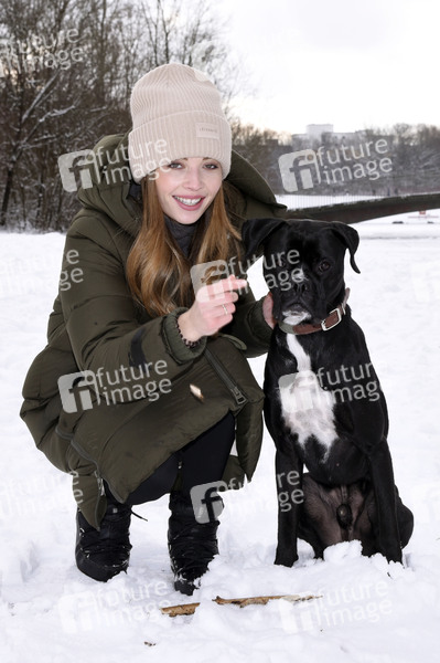 Lena Meckel mit ihrem Hund Ludwig beim Winterspaziergang im Ostpark. München, 07.01.2021