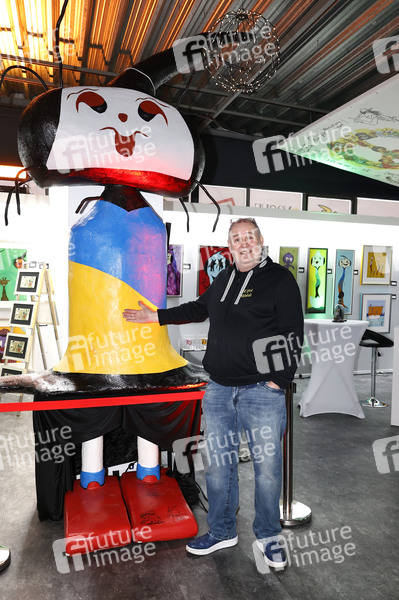 Walter 'Waldi' Lehnertz beim Start der zweiten Kunst-Aktion 'Art'n'Schutz' zugunsten des Tier- und Artenschutzes mit einer Vernissage mit Bildern bedrohter Tiere gemalt von Promis in der Galerie Walentowski. Werl, 23.11.2024