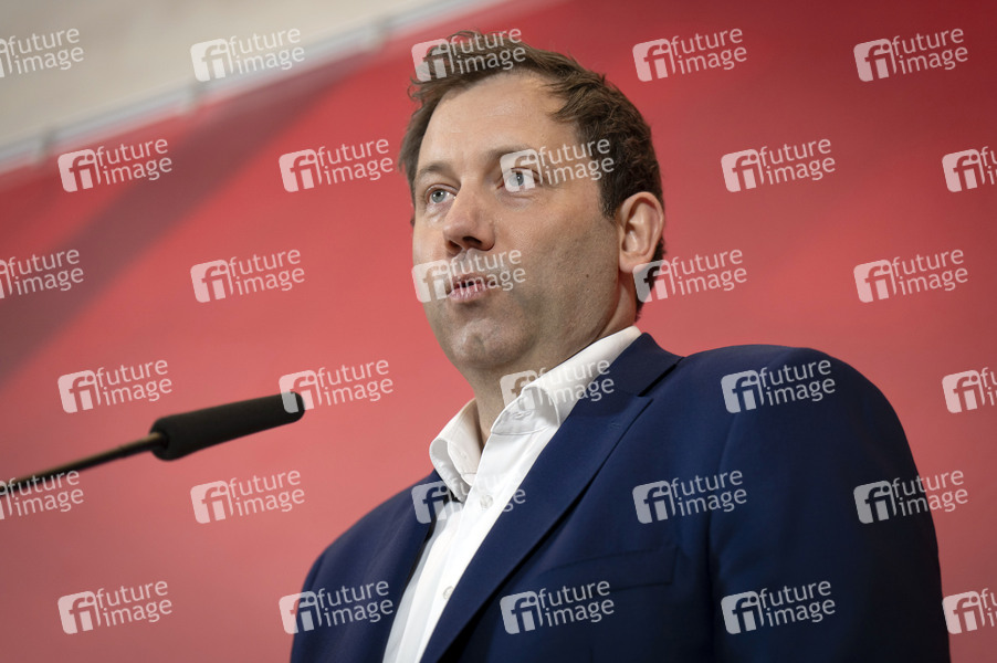 Lars Klingbeil beim Pressestatement zur Fraktionssitzung der SPD-Bundestagsfraktion im Reichstagsgebäude. Berlin, 24.03.2025