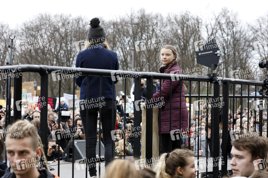 Luisa Neubauer und Greta Thunberg bei der 'Fridays for Future' Schülerdemonstration gegen die Klimapolitik vor dem Brandenburger Tor. Berlin, 29.03.2019