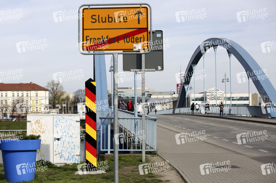 Polizisten und Zollbeamte kontrollieren den Grenzübergang zwischen Frankfurt (Oder) und Slubice. Die Grenzen zwischen Polen und Deutschland sind wegen des Coronavirus geschlossen. Frankfurt (Oder), 16.03.2020