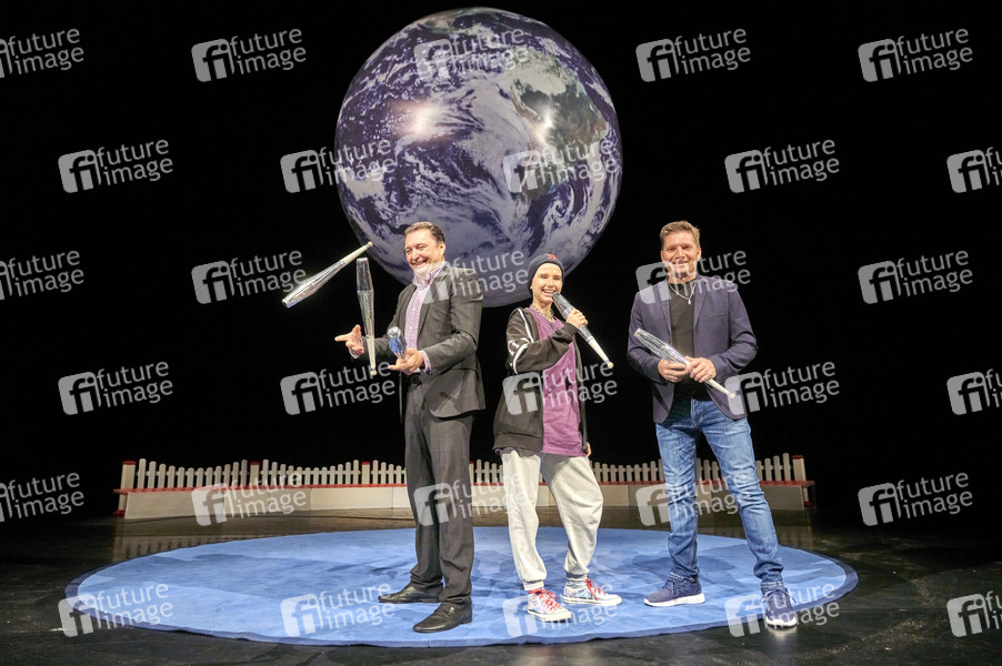 Mario Berousek, Jamie-Lee Kriewitz und Marco Biasini beim Pressetermin zum 4. Grand Prix der Artisten Weihnachtscircus 2022 im Theater am Aegi. Hannover, 24.10.2022