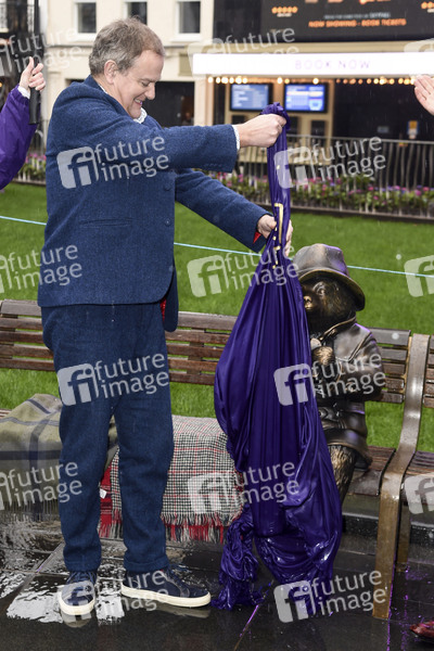 Hugh Bonneville mit Paddington Bär Statue